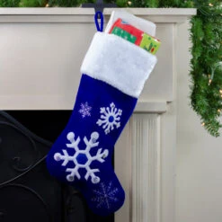 Northlight 22.25″ Blue And White Velveteen Embroidered Christmas Stocking