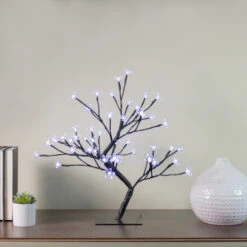 Northlight 18″ Pre-Lit Japanese Sakura Blossom Flower Artificial Tree – Pure White LED Lights