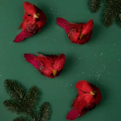 Northlight Set Of 4 Red Cardinal Clip-On Sisal Christmas Bird Ornaments, 3.5″