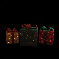 Northlight Set Of 3 Lighted Green With Red Bows Gift Boxes Outdoor Christmas Decorations 13″