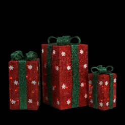Northlight Set Of 3 Pre-Lit Red And Green Glitter Gift Box Outdoor Christmas Yard Decors 10″