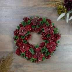 Northlight Red And Green Floral And Pine Cone Wooden Christmas Wreath – 13.5-Inch, Unlit