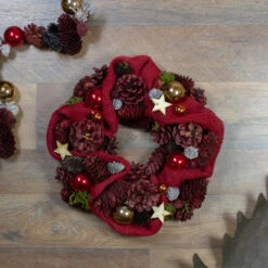 Northlight Red And Gold Pine Cone And Ornament Artificial Christmas Wreath, 9.5-Inch, Unlit