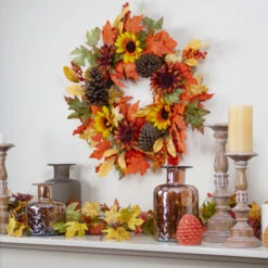 Northlight Sunflower And Pine Cone Artificial Thanksgiving Wreath – 24-Inch, Unlit