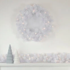 Northlight Pre-Lit White Pine Artificial Christmas Wreath – 24-Inch, Clear Lights