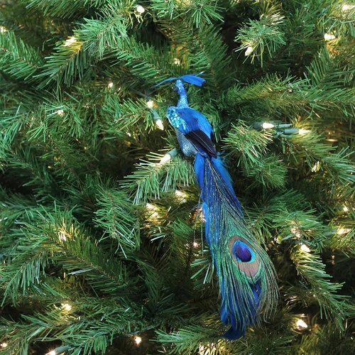 - Blue And Black Glittered Peacock Christmas Ornament