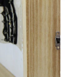 - There is a black moose formed with mini nails and black yarn in the middle with trees snow and snowflakes