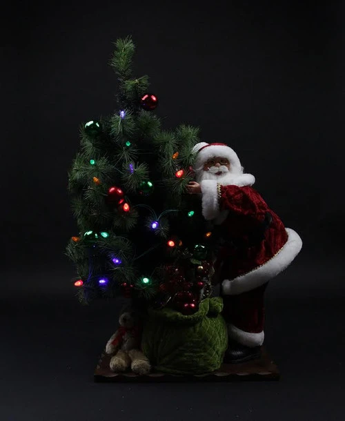 - Green And Red Santa Claus With Tree Christmas Figurine