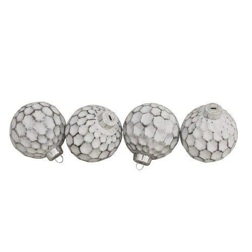 Balls are equipped with silver ornament caps (ornament hooks not included)