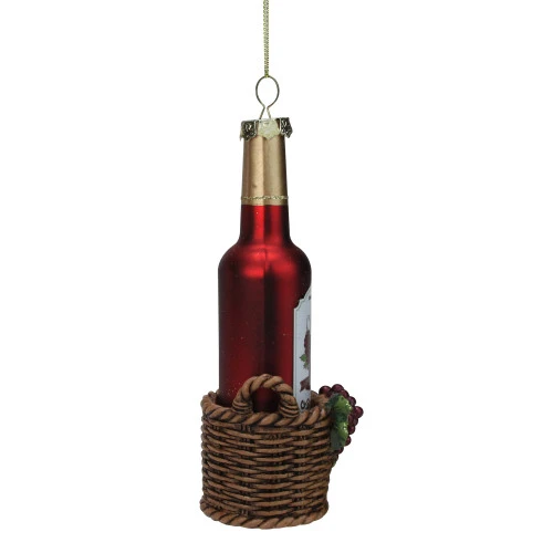 - Red And Gold Wine Bottle In Basket Christmas Ornament