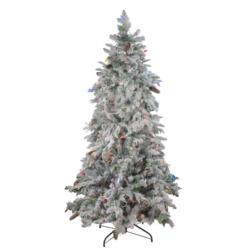Northlight 7.5′ Pre-Lit Meidum Profile Flocked Dunton Spruce Artificial Christmas Tree – Multi-Color Lights