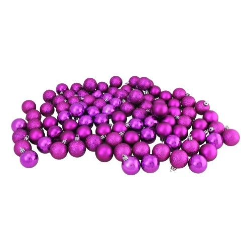 - 96 Count Magenta Purple Shatterproof 4 Finish Ball Ornaments