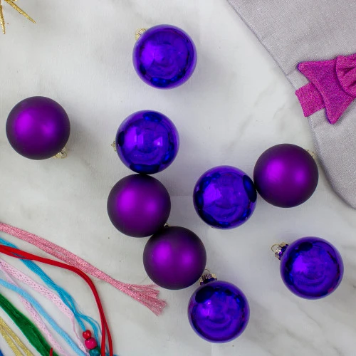 - 9Ct Purple Hanging Glass Ball Christmas Ornaments