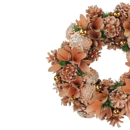 - Featuring Glittered Cones And Autumn Foliage In A Rose Gold Color