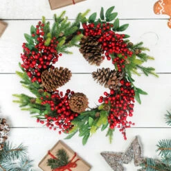Dimensions: 16″ diameter (measured from outermost edge to outermost edge across the wreath)