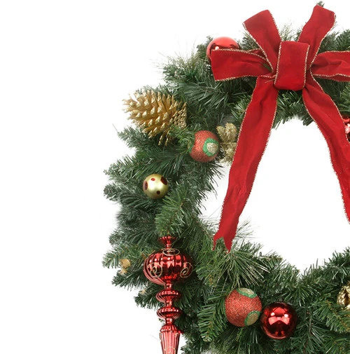 - Red And Gold Pre Decorated Pine Artificial Christmas Wreath